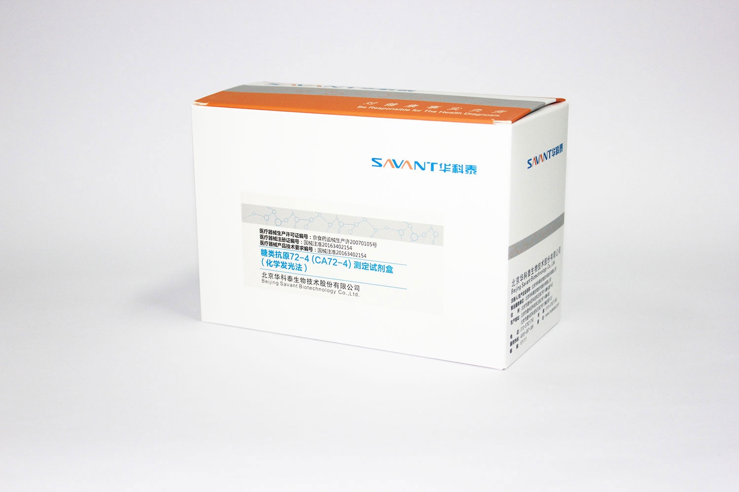 This kit is used for quantitative detection of carbohydrate antigen 72-4 (CA72-4) in human serum in vitro. Tumor associated antigen 72-4 (CA72-4) is a tumor associated glycoprotein antigen recognized by IgG monoclonal antibody B72.3. The molecular weight of CA72-4 is 48kDa. It has been reported that in many tumor diseases, including gastric cancer, colon cancer, pancreatic cancer and ovarian cancer, the level of CA72-4 in serum and plasma has increased significantly. Especially for gastric cancer and ovarian cancer, it has a high sensitivity and specificity of 95%. CA72-4 level has a good correlation with tumor size and stage. CA72-4 is a good tumor marker for treatment monitoring and follow-up of gastric cancer patients, and has a high diagnostic value with CA19-9 and CEA joint examination.
