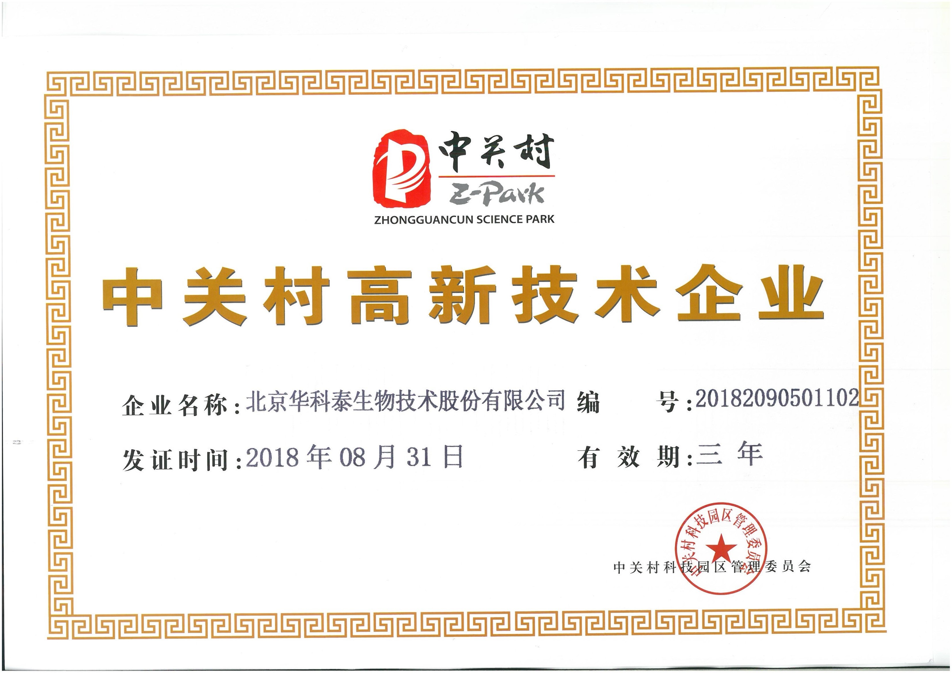 高新技术企业证书